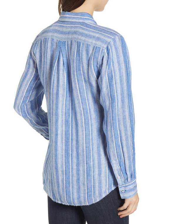 Santiago Stripe Linen Blend Shirt in Blue Sea