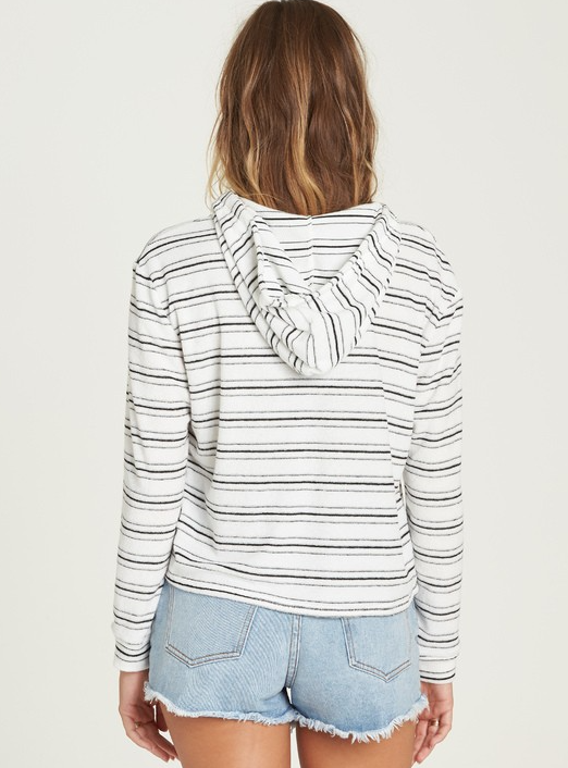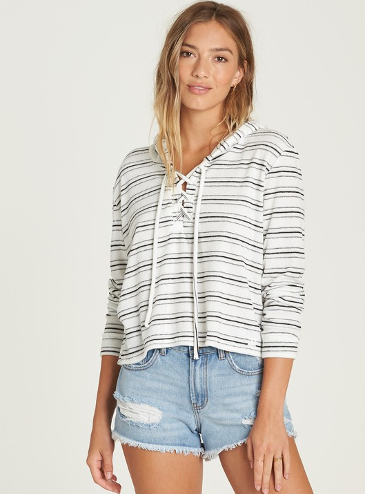 Cure Monday Blues with a chilled-out hoodie. Made from plush looped terry fabric, the women’s sweatshirt brings a washed ashore look with a lace-up neckline and relaxed fit.