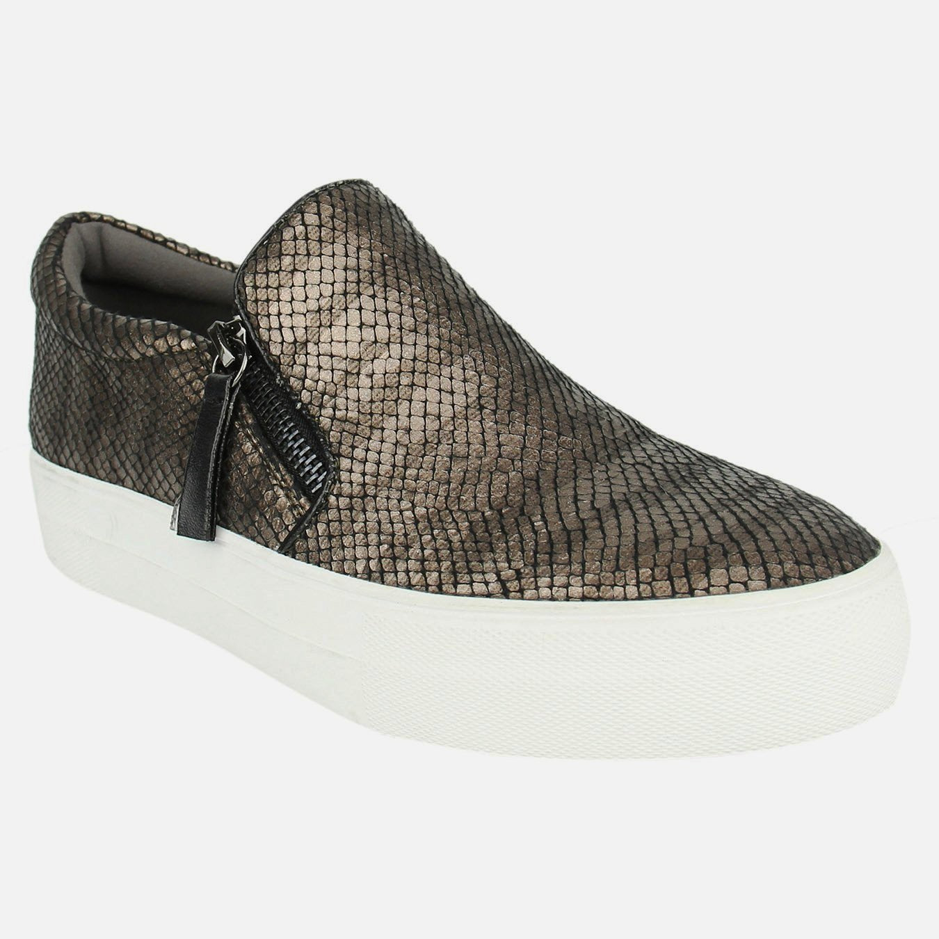 Take a walk on the wild side with this bronze snake skin slip on! We love this on the go sneaker